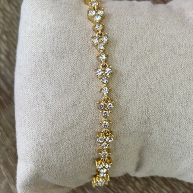 Élégant et raffiné, le bracelet Soline se distingue par ses délicates pierres en strass qui captent la lumière à chaque mouvement. Conçu en acier inoxydable doré, il allie résistance et éclat intemporel. Idéal pour accompagner vos tenues habillées comme vos looks du quotidien, ce bijou apporte une touche de féminité et de brillance subtile.
