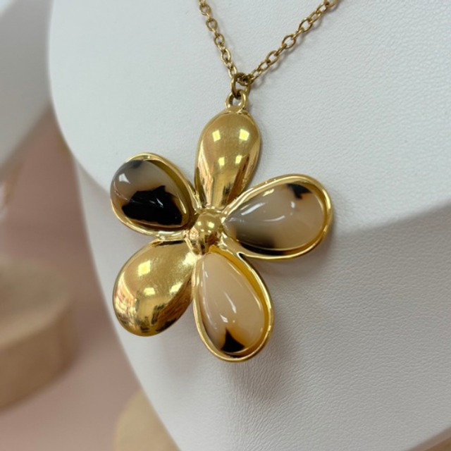 Affirmez votre style avec ce collier en acier inoxydable doré et son pendentif en forme de fleur au motif léopard. Original et raffiné, il mêle la délicatesse florale à l’audace de l’imprimé animalier, pour un look à la fois féminin et affirmé.